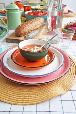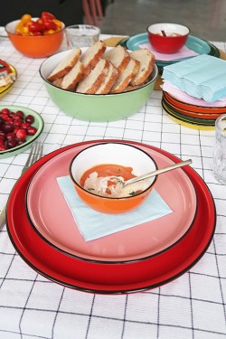 Celebrate, like the old days, a special moment with family and friends. A delicious cup of coffee with a piece of cake, or a beautiful dessert is always good. These plates, executed in ceramics and based on vintage enamel crockery can be beautifully combined with the rest of the collection. Plate thickness is 2.3cm, easily fits in dishwasher.